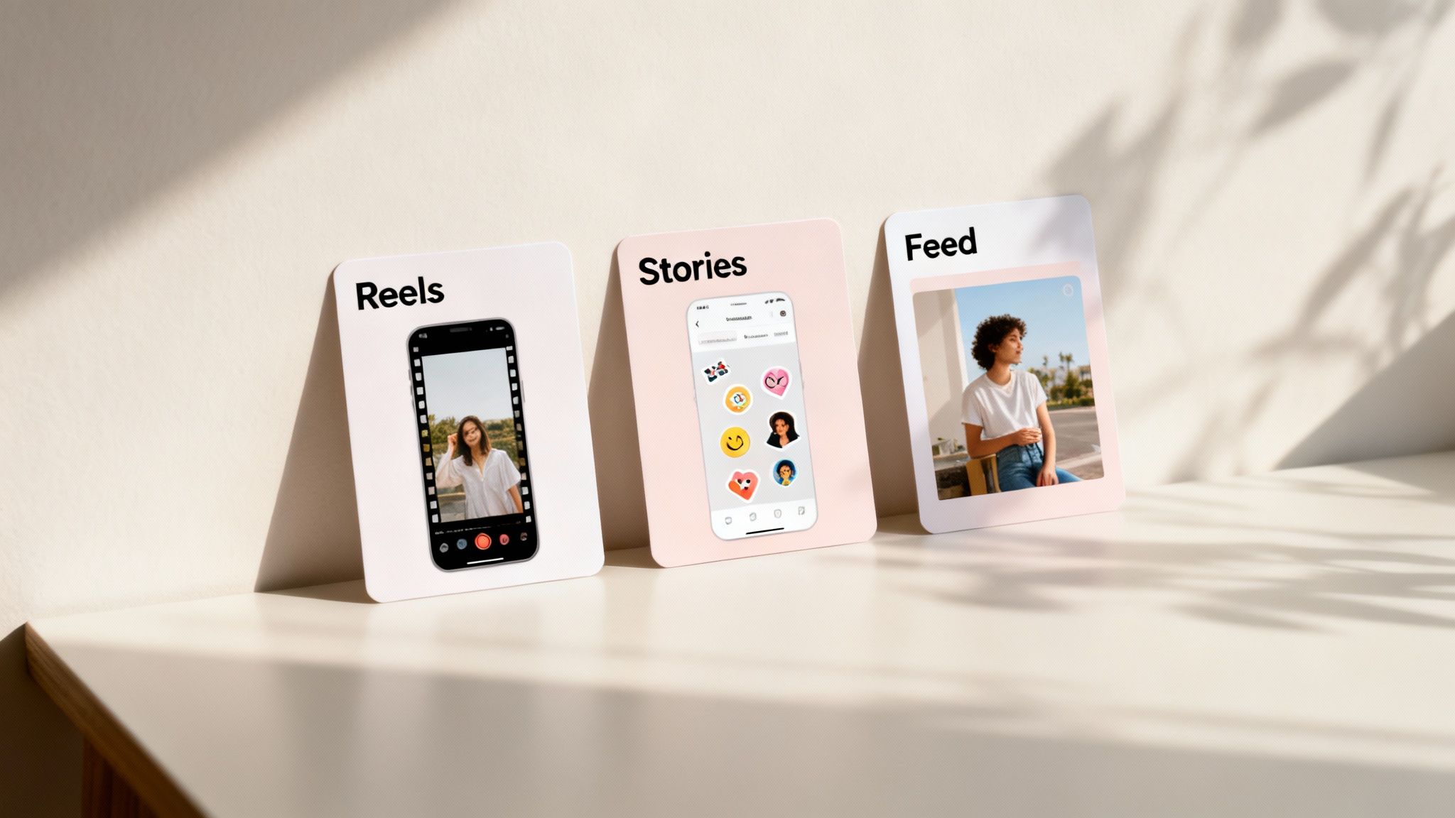 It's tempting to just hit "post" anywhere, but that's a huge mistake. Instagram isn't a one-size-fits-all platform. Each placement—Reels, Stories, and the Feed—has a totally different job. Picking the right one can be the difference between your content taking off or just fizzling out.