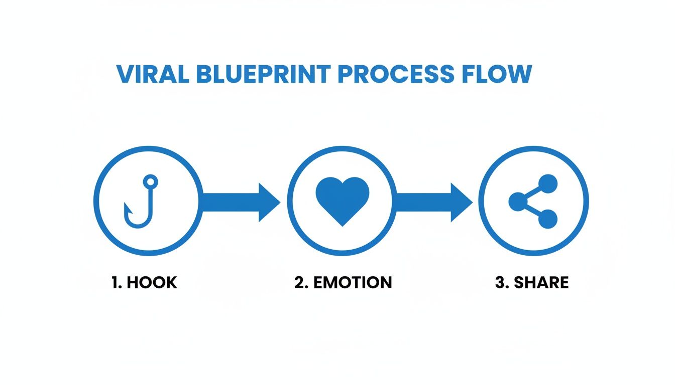 Detrás de cada sensación viral hay un esquema replicable que aprovecha directamente la psicología humana. Es una combinación simple pero poderosa: un gancho killer que detiene el desplazamiento, un disparador emocional que hace que las personas sientan algo, y una forma sin fricciones de compartirlo. ¿La mejor parte? Puedes dominar este marco sin siquiera mostrar tu cara en la cámara.